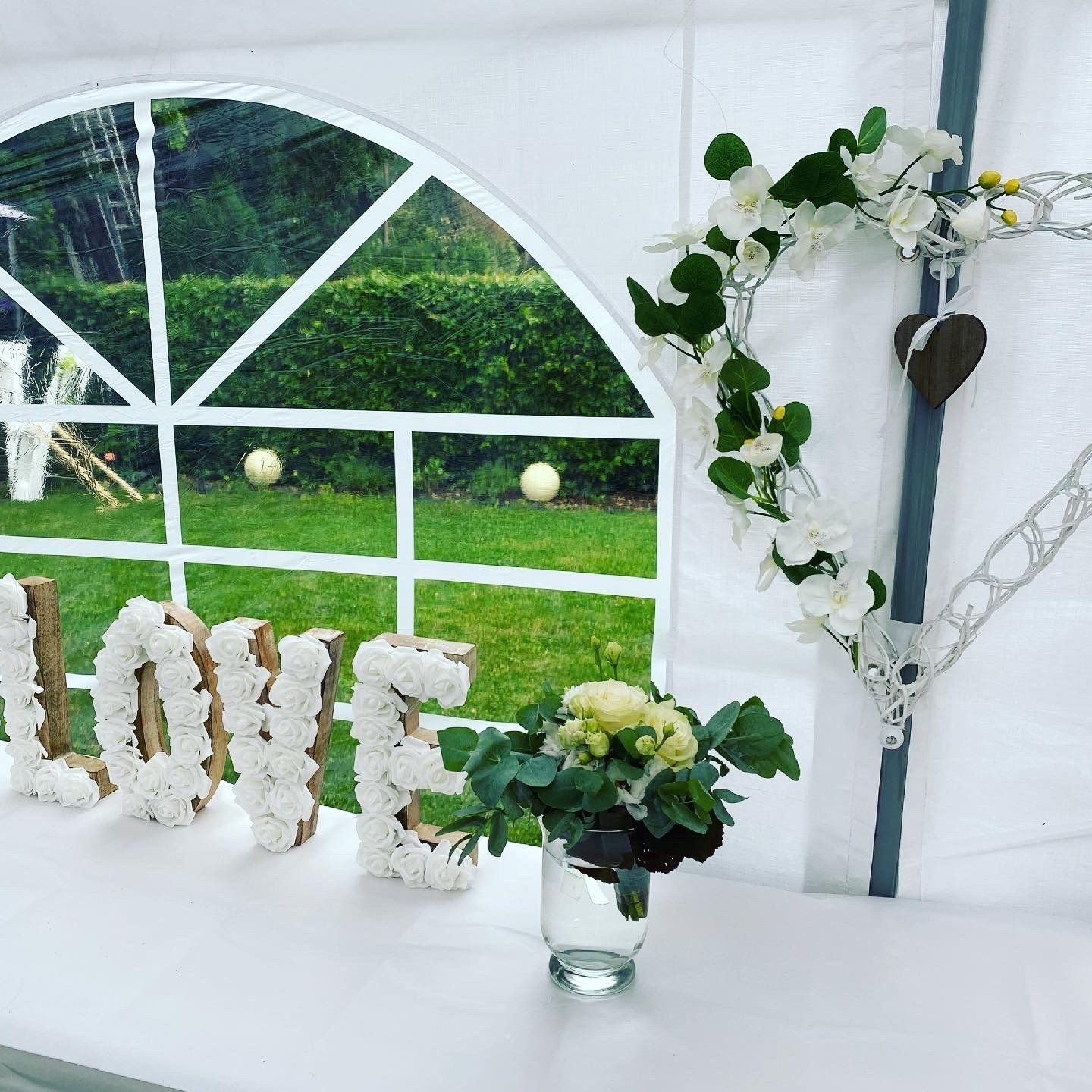 Brautpost Blumenkugel und Schild Karten & Geschenke