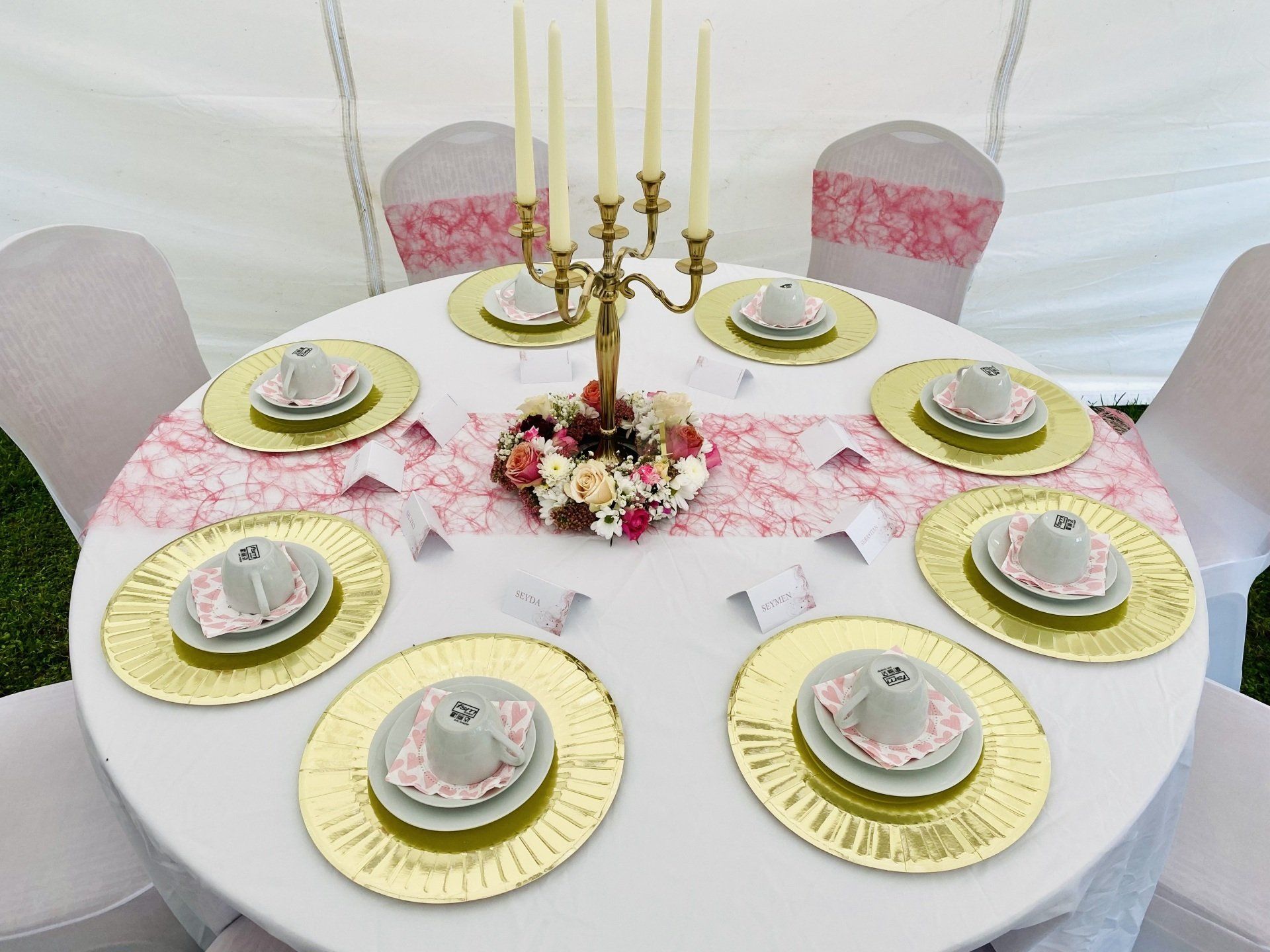 Buffettisch mit Skirting und farbiger Papiertischdecke